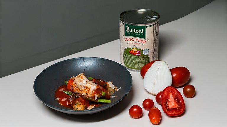Peito de Frango Recheado com Espargos e Amêndoas feito com Molho de Tomate com Cebola BUITONI® Professional